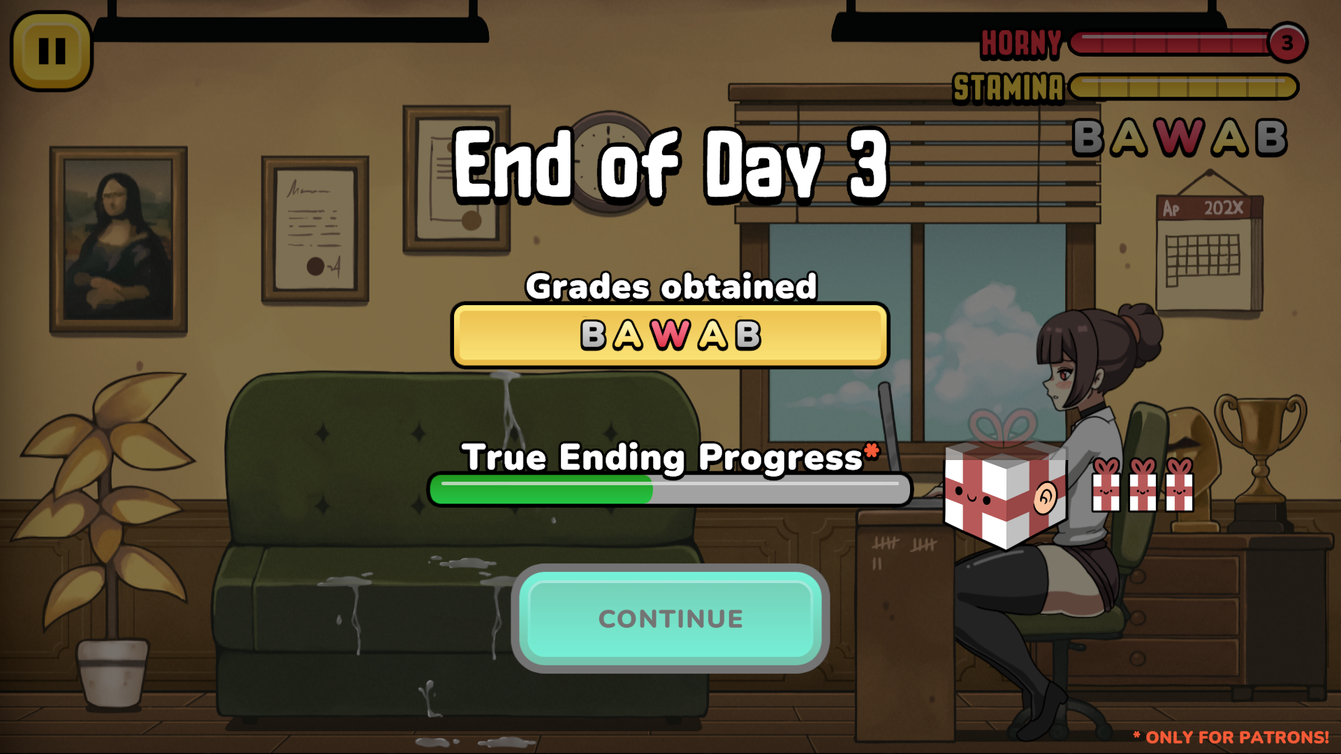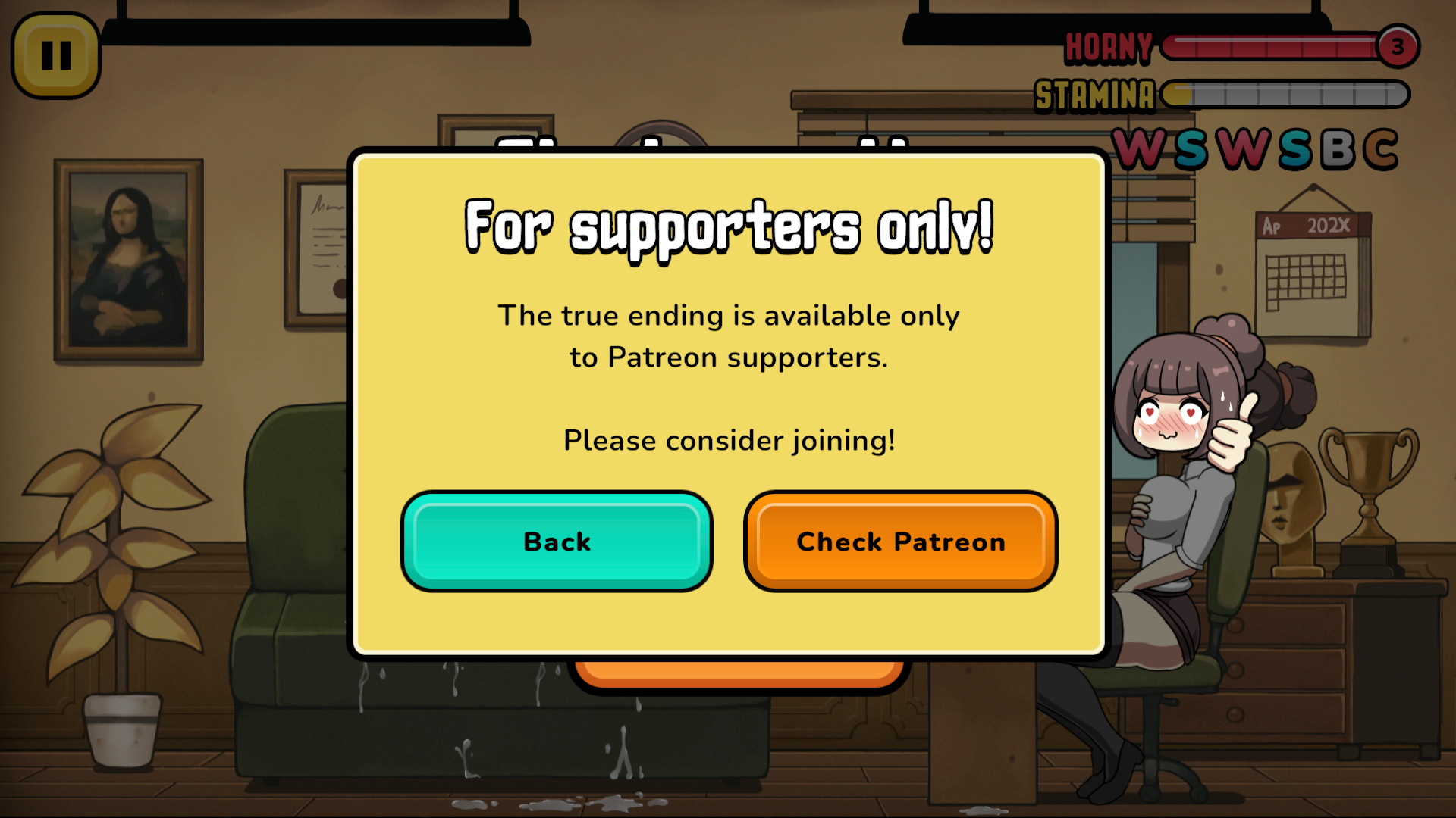 I can't believe this, I worked so hard to get the ending, and I can't even see it without Patreon (TT)